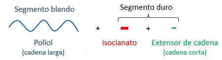 Las mezclas de poliol e isocianato generan una reacción exotérmica (generan emisiones, incluso altas emisiones de calor) y también reaccionan violentamente con el agua. El poliuretano (PUR y PU) es un polímero formado por una cadena de unidades orgánicas unidas mediante enlaces de carbamato (uretano). Para la producción de polímeros de poliuretano se necesitan dos grupos de sustancias como mínimo bifuncionales para que actúen como reactivos: compuestos con grupos isocianato, y compuestos con átomos de hidrógeno activo. Las características físicas y químicas, estructura y tamaño molecular de estos compuestos influyen en la reacción de polimerización, así como en la facilidad de procesamiento y las propiedades físicas finales del poliuretano terminado. Además, se emplean aditivos, como catalizadores, tensoactivos, agentes sopladores, reticulantes, retardantes de la llama, estabilizadores ligeros y rellenos para controlar y modificar el proceso reactivo y las prestaciones del polímero. Hay que distinguir primero entre poliéteres y poliésteres. TPU basados en poliéster (principalmente derivados de ésteres de ácido adípico), TPU basados en poliéter (principalmente a base de éteres de tetrahidrofurano (THF)). Los poliéteres se derivan de la reacción entre uno "starter" que contiene hidrógenos activos (glicoles, trioles, ...) con óxido de etileno y los iniciadores . Los poliésteres derivados de la condensación de un di-o poli-ácido (ácido adípico, etc. aromático), con glicoles o Trioli (monoetilenglicol MEG, DEG dietilenglicol, butanodiol BD, trimetilolpropano TMP).