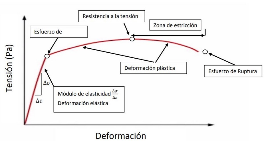 Ahora que podemos observar el comportamiento de la deformación en función a la tensión aplicada, podremos conocer distintas propiedades del material.