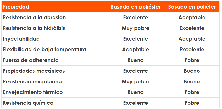 • Químicas aromáticas, alifáticas, de poliéster y poliéter