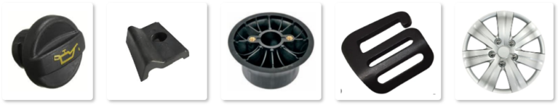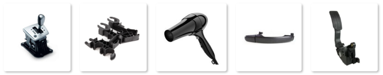 - Automoción: Abrazaderas, clips, tiradores de puertas, revestimientos.