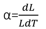 L, aumentará al hacerlo la temperatura, T. Esta relación se refleja mediante el coeficiente de dilatación lineal, a, que está dado por la formula en figura: