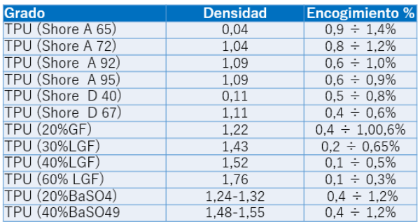 sobre muestras moldeadas por inyección. Los valores se basan en materiales naturales o negros a menos