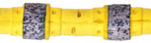 - distanciadores: elementos anulares de acero, con una longitud media de 3 - 5 mm y un diámetro exterior de 8 mm que, colocados cerca del cordón de diamante, permiten mantenerlo siempre a la misma distancia del siguiente; abrazaderas de unión: metálicas elementos de cobre o acero que permiten el cierre del hilo diamantado o la unión de varios tramos de cable de forma que formen una capa de longitud adecuada según el tipo de corte a realizar. Las cuentas de diamantes se dividen en dos categorías principales según el método de colocación de los diamantes sintéticos adecuados para realizar el corte.