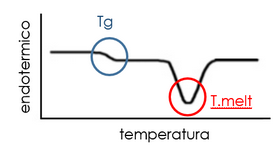 La Tg se acompaña de un cambio en la capacidad calorífica del material. El polímero no se funde (a diferencia de un polímero cristalino que se fundirá cuando se aplica calor), pero experimenta un cambio en la estructura (de rígido a flexible) que produce un cambio en la capacidad calorífica del material.