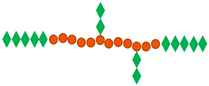 La mayor parte de la sección anterior se basó en la suposición implícita de que las cadenas poliméricas son lineales (con la notable excepción de la figura). Al evaluar tanto el grado de polimerización como la longitud de la cadena extendida, supusimos que la cadena tenía solo dos extremos. Si bien los polímeros lineales son importantes, no son el único tipo de moléculas posibles: las moléculas ramificadas y entrecruzadas también son comunes. Cuando hablamos de un polímero ramificado, nos referimos a la presencia de cadenas poliméricas adicionales que salen del esqueleto de una molécula lineal. (Los grupos sustituyentes pequeños, como los grupos metilo o fenilo en las unidades repetidas, generalmente no se consideran ramificaciones o, si lo son, deben especificarse como "ramificaciones de cadena corta"). La ramificación puede surgir a través de varias rutas. Una es introducir en la reacción de polimerización algún monómero con la capacidad de servir como ramificación. Considere la formación de un poliéster. La presencia de ácidos difuncionales y alcoholes difuncionales permite que crezca la cadena polimérica. Estas moléculas difuncionales se incorporan a la cadena con enlaces éster en ambos extremos de cada una. Los ácidos o alcoholes trifuncionales, por otro lado, producen una molécula lineal por la reacción de dos de sus grupos funcionales. Si el tercero reacciona y la cadena resultante continúa creciendo, se ha introducido una rama en la cadena original. Una segunda ruta es a través de la ramificación accidental, por ejemplo, como resultado de la abstracción de un átomo de la molécula lineal original, y el crecimiento de la cadena se produce a partir del sitio activo resultante. Esto es algo bastante común en la polimerización de etileno por radicales libres, por ejemplo. Una tercera ruta es el injerto, mediante el cual se pueden agregar cadenas poliméricas preformadas pero aún reactivas a sitios a lo largo de una columna vertebral existente (lo que se denomina "injerto en"), o donde se pueden exponer múltiples sitios de iniciación a lo largo de una cadena al monómero (lo que se conoce como "injerto") llamado “injerto de”). La cantidad de ramificación introducida en un polímero es una variable adicional que debe especificarse para que la molécula se caracterice por completo. Cuando solo hay un ligero grado de ramificación, la concentración de puntos de unión es lo suficientemente baja como para que estos puedan relacionarse simplemente con el número de extremos de la cadena. Por ejemplo, dos moléculas lineales separadas tienen un total de cuatro extremos. Si el extremo de una de estas moléculas lineales se une al centro de la otra para formar una T, la molécula resultante tiene tres extremos. Es fácil generalizar este resultado. Si una molécula tiene 12 ramificaciones, tiene 12 + 2 extremos de cadena si la ramificación es relativamente baja. En el primero, una serie de ramas relativamente uniformes emanan a lo largo de una columna vertebral común; en el último, todas las ramas parten de una unión central. Si la concentración de puntos de unión es lo suficientemente alta, incluso las ramas contendrán ramas. Eventualmente, se puede llegar a un punto en el que la cantidad de ramificación sea tan extensa que la molécula de polímero se convierta en una red tridimensional gigante. Cuando se logra esta condición, se dice que la molécula está entrecruzada. En este caso, se puede considerar que un objeto macroscópico completo consiste esencialmente en una molécula. Las fuerzas que dan cohesión a dicho cuerpo son los enlaces covalentes, no las fuerzas intermoleculares. En consecuencia, el comportamiento mecánico de los cuerpos reticulados es muy diferente al de aquellos sin reticulación. Sin embargo, también es posible suprimir el entrecruzamiento de modo que las moléculas altamente ramificadas permanezcan como entidades discretas, conocidas como polímeros hiperramificados. Otra clase importante de polímeros altamente ramificados son los dendrímeros o moléculas en forma de árbol. Se trata de estructuras completamente regulares, con pesos moleculares bien definidos, que se forman por condensación sucesiva de monómeros ramificados.Polímeros de red