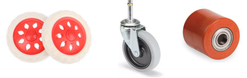 Mexpolimeros vende TPU para fabricar ruedas sólidas de alta calidad y de cualquier dureza. Nuestros poliuretano están formulados para obtener la mejor resistencia al desgaste por abrasión, fricción y ataque químico, para trabajar a temperaturas superiores a 105ºC, manteniendo las propiedades mecánicas del recubrimiento, especialmente la resistencia a la abrasión. Las aplicaciones industriales incluyen ruedas de carga y tracción de montacargas , carros de supermercado e industriales, y ruedas de montaña rusa. El patinaje sobre ruedas y el skateboarding modernos se volvieron económicos solo con la introducción de piezas de poliuretano resistentes a la abrasión y resistentes. El poliuretano también se utiliza para fabricar neumáticos para equipos pequeños en la industria del césped y la jardinería para carretillas, carretillas manuales, cortadoras de césped, carros, etc. Proporcionan el rebote y la sensación de un neumático lleno de aire con el beneficio de no tener pinchazos. También pesan aproximadamente lo mismo que los neumáticos llenos de aire, a pesar de que son de poliuretano sólido en su totalidad. Se han desarrollado otras construcciones para neumáticos neumáticos.